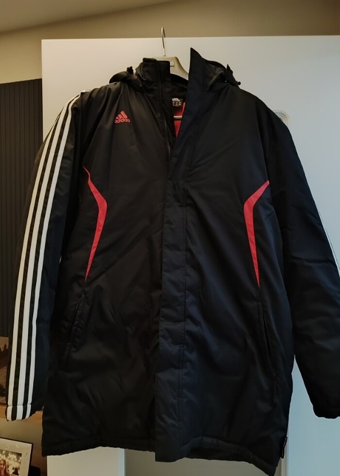 Adidas uzun ceket içi yarım polar kol içinde ekstra lastikli kolu var cepler polarlı cepleri var yaka kısmında polar verdır önden hem cırtlı hem fermuarlı. teknik direktör ceketi montu futbolcu ceketi montu acayip sıcak tutuyor beden büyük olduğu için çok giyilmedi belki 3_4 kere anca giyilmiştir belki de daha az. yepyeni duruyor. Şu geçirmez