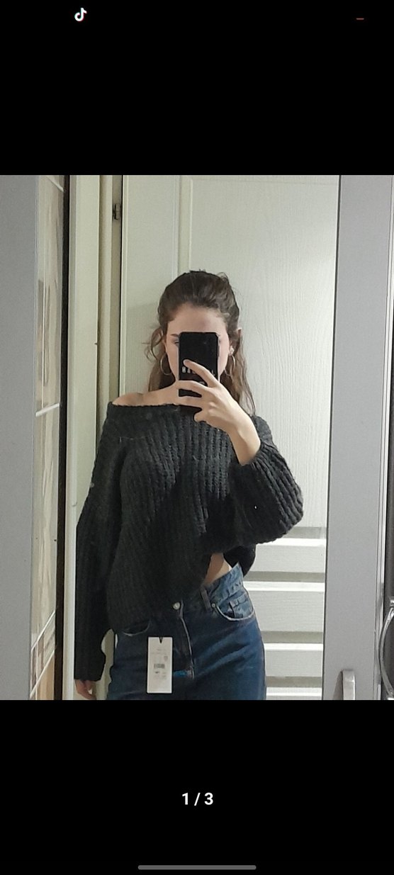 Gri örgü kadın triko kazak, uzun kollu ve boğazlı yakaya sahip, günlük rahat kullanım için uygun rahat kesimlidir.