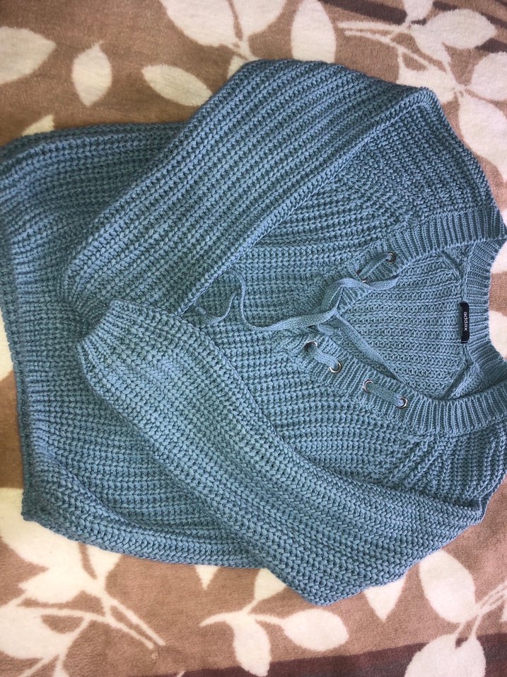 Gri renkte, V yakalı, uzun kollu ve midi boyda bol kesim kadın triko kazak. Rahat dokusu günlük kullanıma uygundur.
