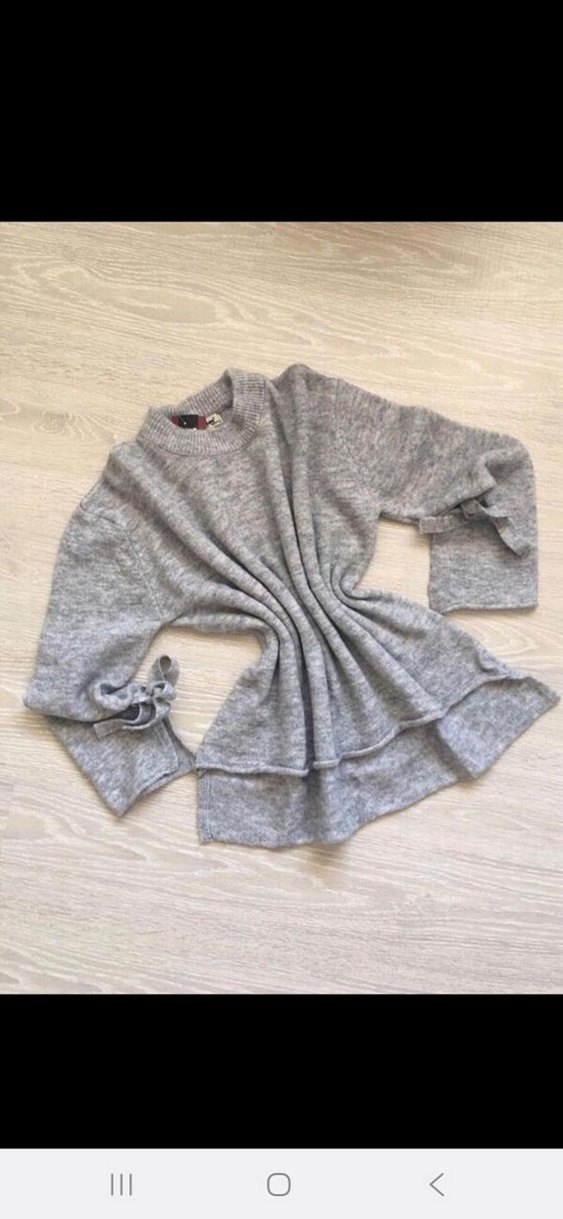 Gri uzun kollu ve bisiklet yaka kadın kazak. Bol kesimi ile rahat ve şık bir günlük tercih.