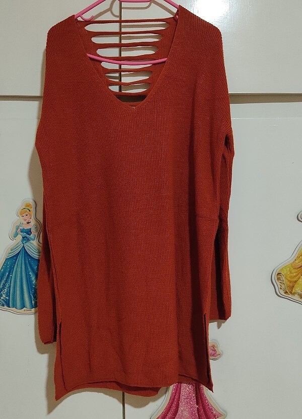 Sırt dekolteli sayılı giyilmiştir . Kiremit rengi