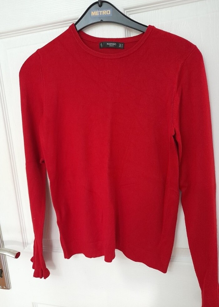 Mango marka. Tertemiz. Kolları fırfır detaylı. #mango #kazak #kırmızıkazak