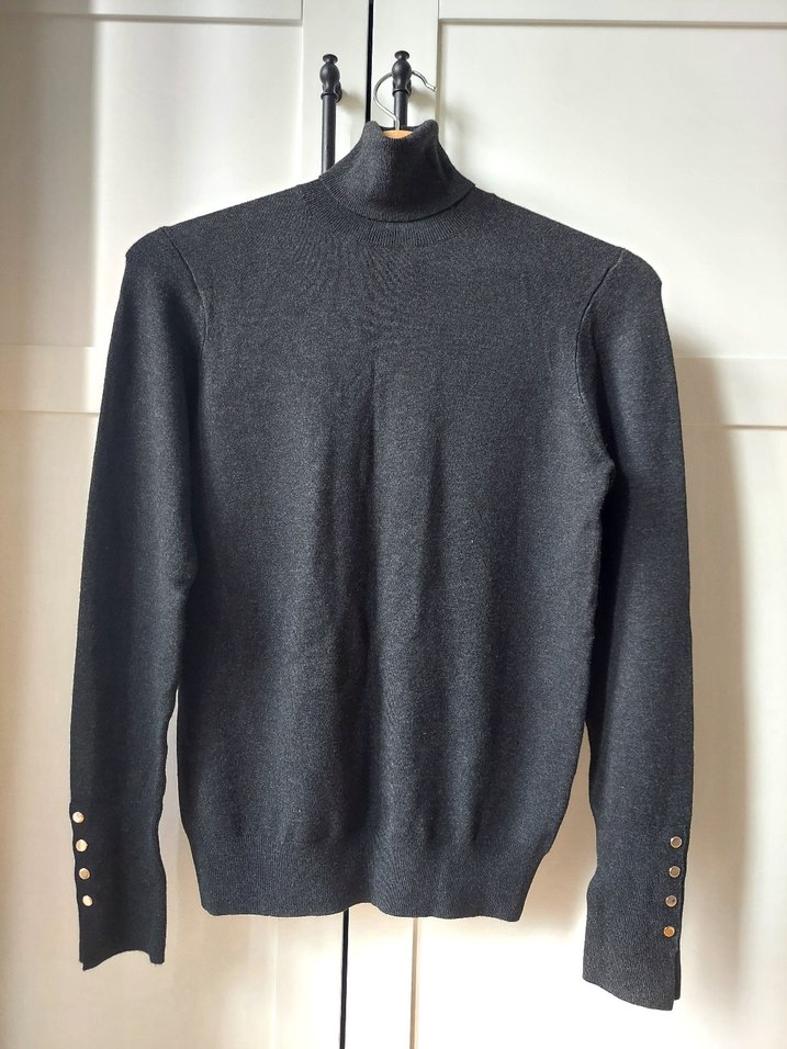 Zara balıkçı yaka düz basic triko. M beden, rengi koyu gri, antrasit tonlarında. Etiketli, hiç kullanılmadı. Gold düğme detaylı. Dokusu tok ve yumuşacık. Aynısından bir tane daha olduğu için satıyorum, sorunsuz