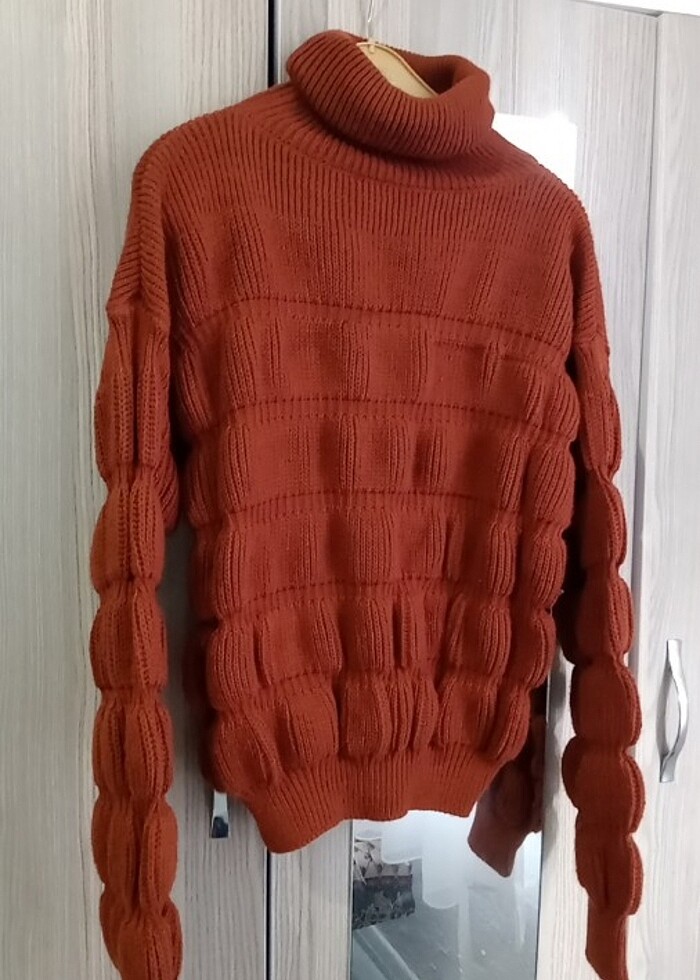 Kalın, yumuşacık bir kazak. Rengi: Kiremit-Kahve tonlarında