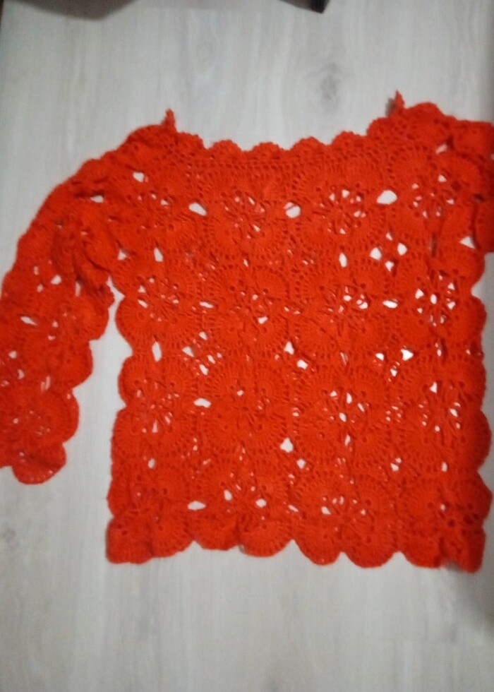 El örgüsü motifli Kazak. 46 bedene kadar uyar. Nar cicicegi. Renk yakın fotoğraf ta daha net görünüyor