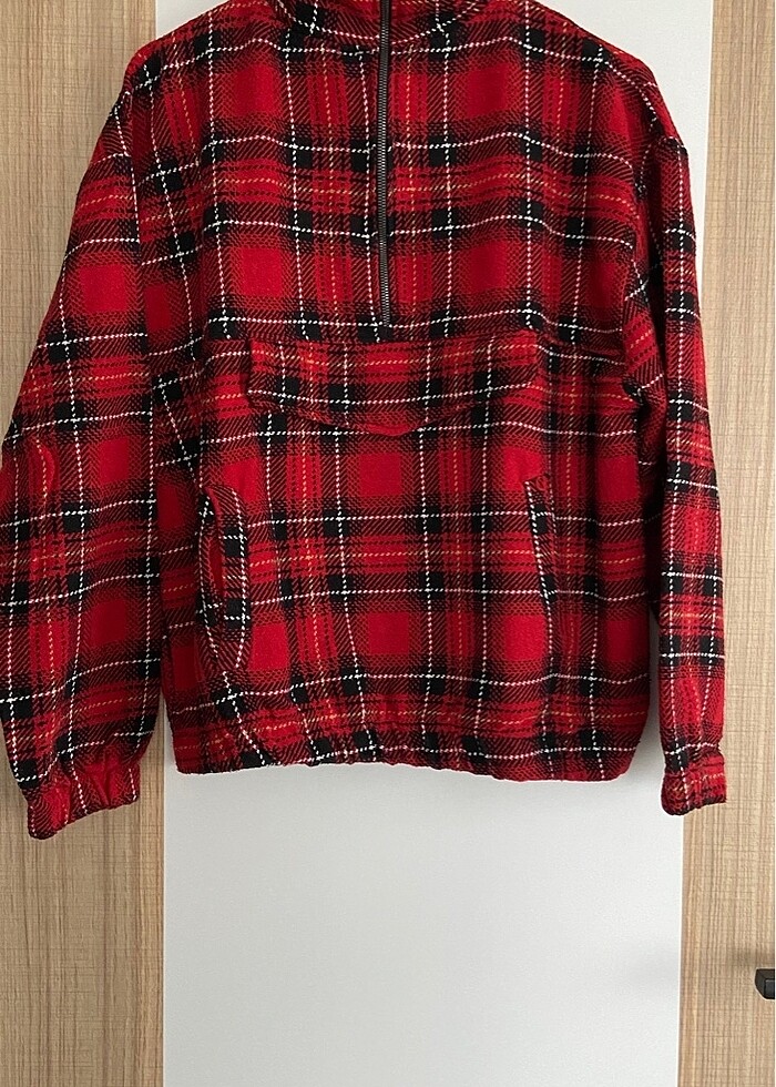Kırmızı cepli yakası tüylü kazak 2 kez giyildi
