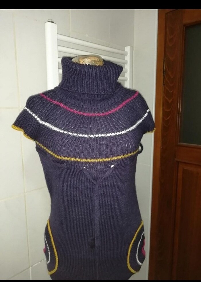 Park hand markadır. Beden eteketi kesildiği için beden tahmini yazılmıştır. O nedenle ölçülere dikkat ediniz. Esnetilmeden iki koltukaltı arası 40 cm omuzdan boy 75 cm civarıdır. Arka kısımda belirsiz bir iki yerde hafif tülerme vardır.