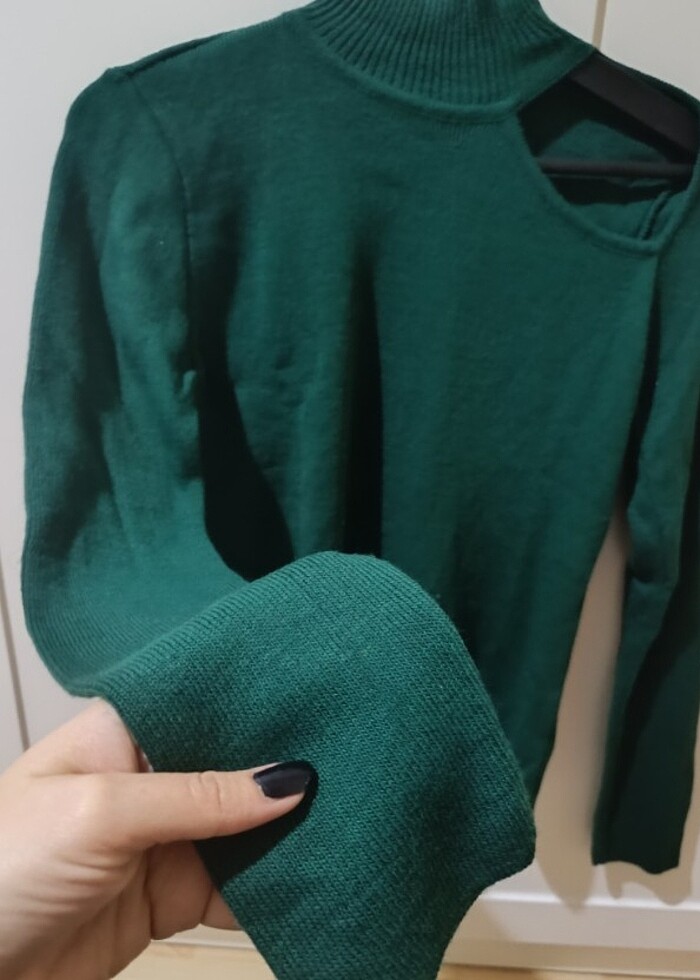 Yeşil, omuz detaylı kazak