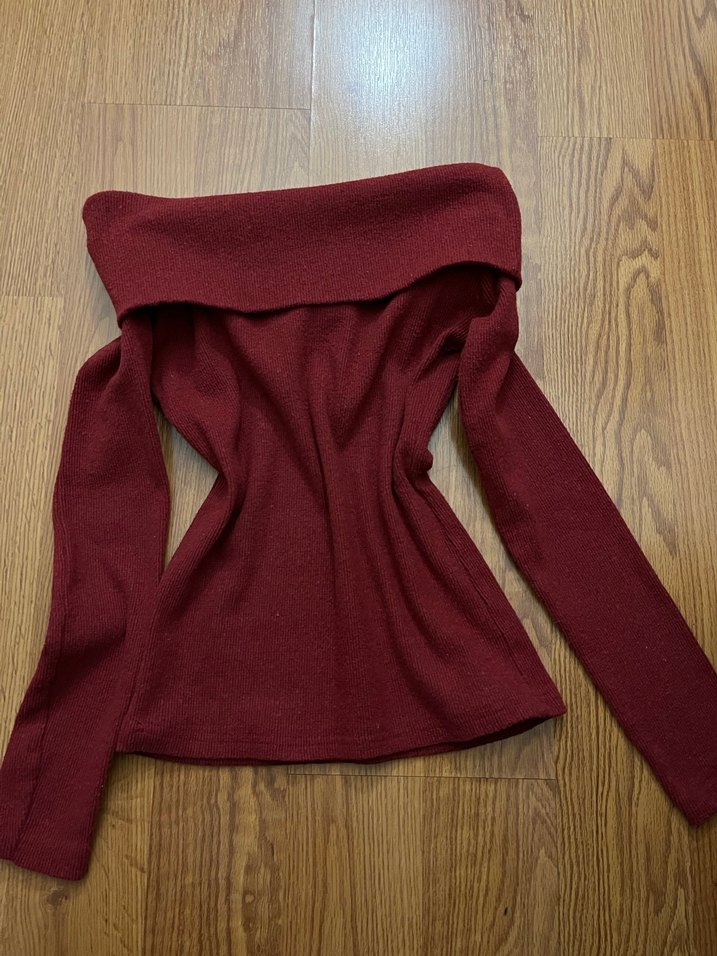 Bordo, uzun kollu, kayık yaka, vücuda oturan kazak