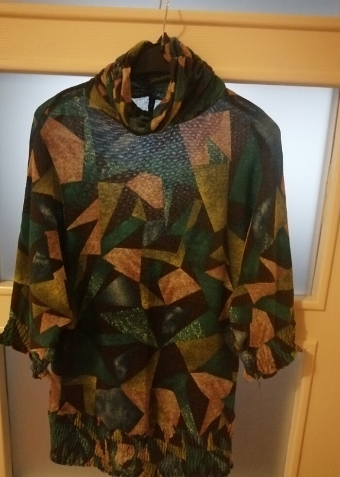 Kazak gibi bluz. Boğazlı, kısa kollu