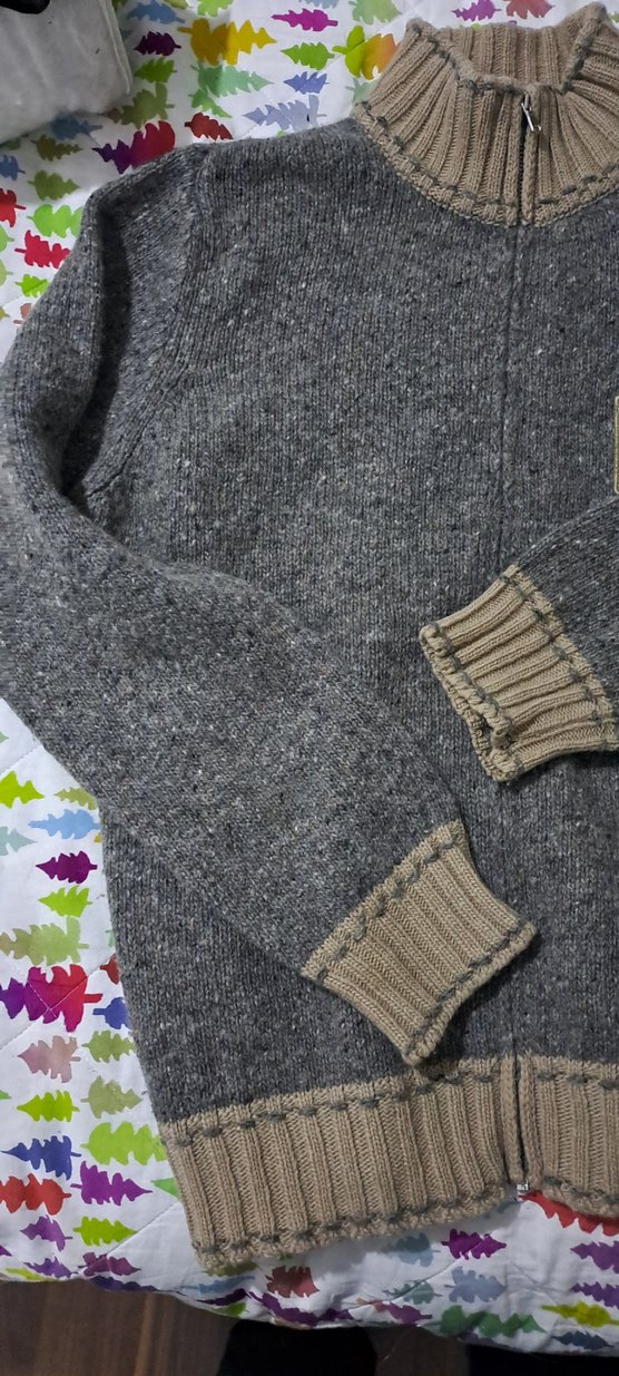 Gri renkli, örgü unisex hirka yada kazak Yuvarlak yaka, uzun kollu ve bol kesimdir. Günlük kullanım için rahat ve desensizdir. 10 11 12 13 yas rahat olur