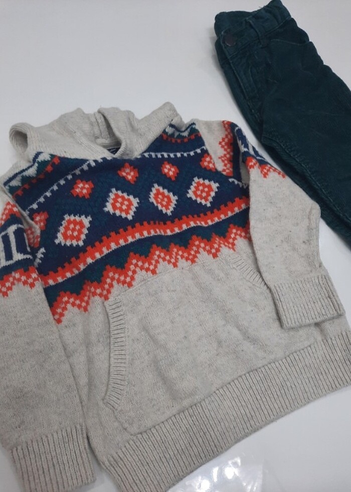 Orjinal Gap marka kazak ve defacto kadife pantolon. Kazakta tüleren yerleri var temizlenince yepyeni olacaktır