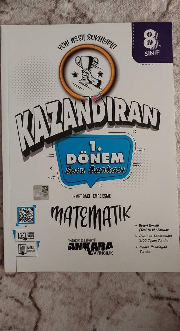 Kazandıran 6. Sınıf Matematik 1. Dönem Soru Bankası, temel ve yeni nesil sorular içerir. Sınavlara uygun 1000 soru ve kazanımlara göre hazırlanmıştır. birkaç test yapılmış gerisi temiz