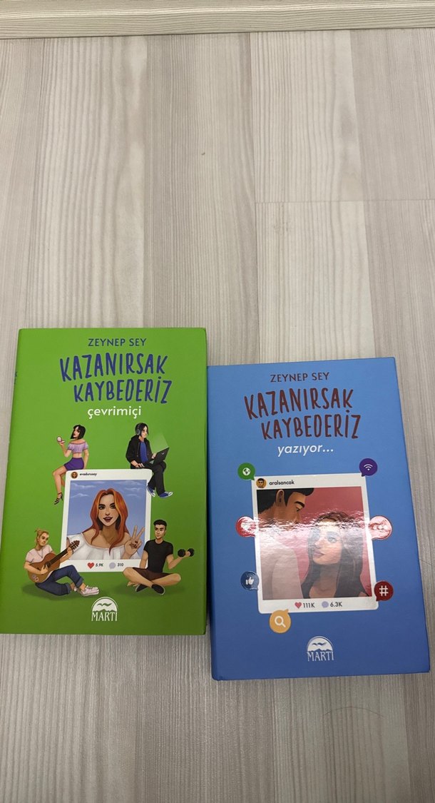 Zeynep Sey'in 'Kazanırsak Kaybederiz' adlı iki romanı. Set, 'Çevrimiçi' ve 'Yazıyor...' kitaplarını içerir. Ciltli 2 kitap Temiz Martı YAYINLARI