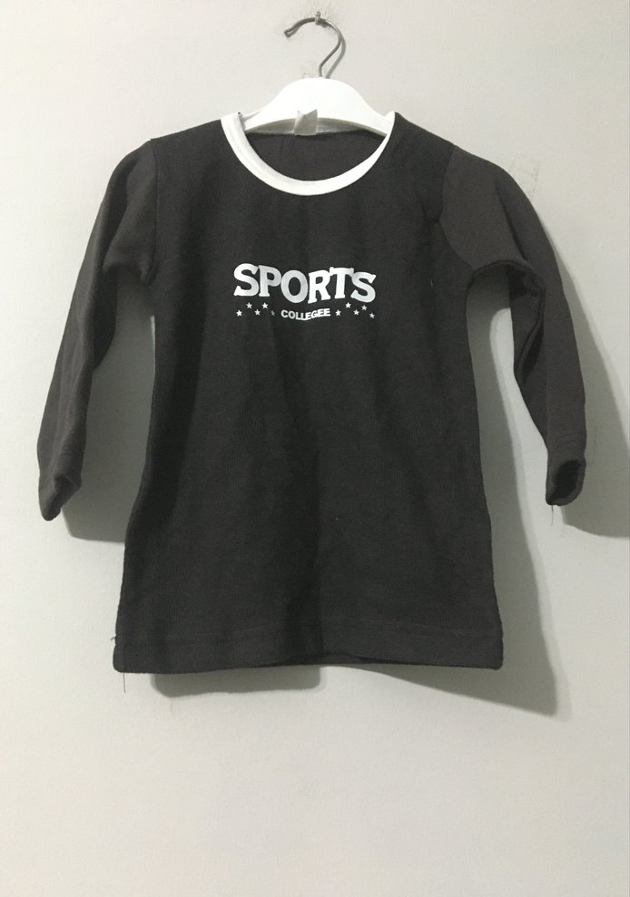 çocukları için siyah renkli, uzun kollu, ince kesim ve baskılı 'SPORTS' yazılı yumuşak kumaştan sweatshirt. Velcro detaylıdır.