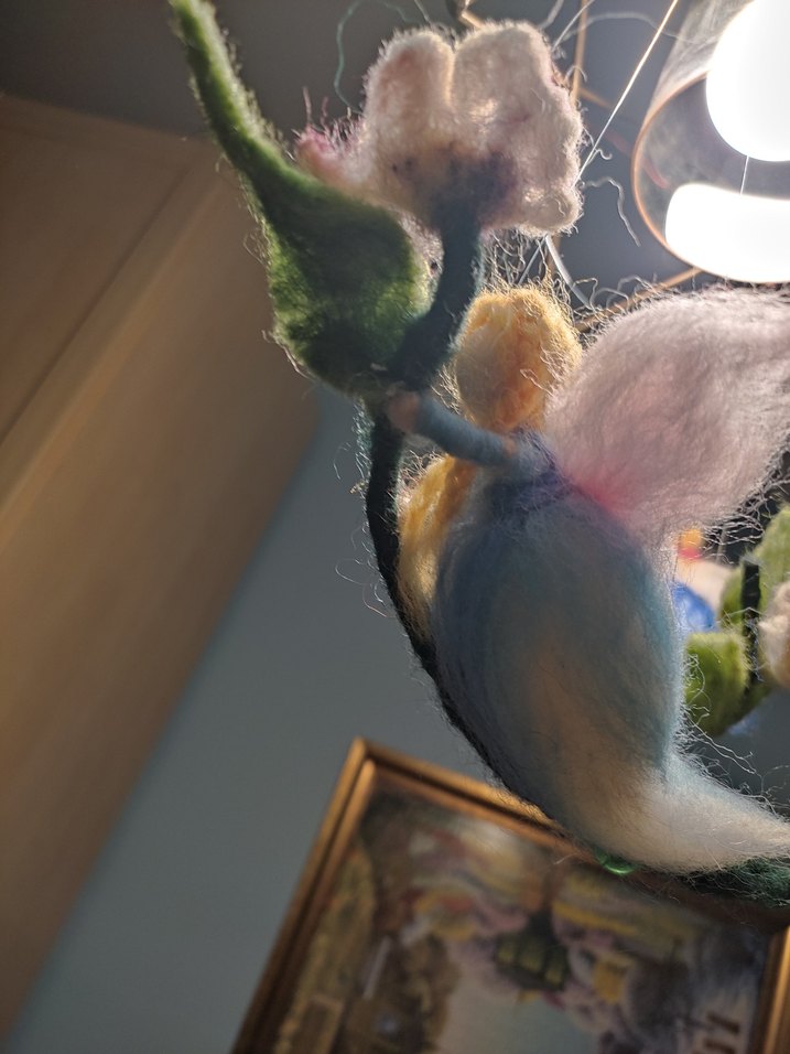21 cm uzunluğunda. misina ile istediğiniz yere asabilirsiniz. kendi el emeğimdir.