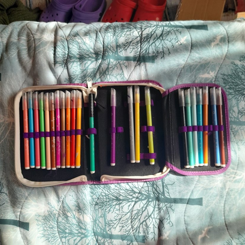 kalemler bazıları yaziyo. 24 adet 12 si felan yazıyordur büyük ihtimalle. kalem çantasınida yanında yollayacağım.