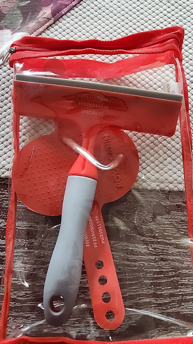 Kırmızı ve gri renklerde,iki parça 1.Tüy toplama / Tıraş artığı toplama sıyırıcı( Kpltuklardan ve halıdan dökülen tüyleri toplar aynı zamanda) 2. Kauçuk masaj & Tüy toplama fırçası (Yuvarlak parça) Hiç lullanılmamış ve orijinal paketinde.
