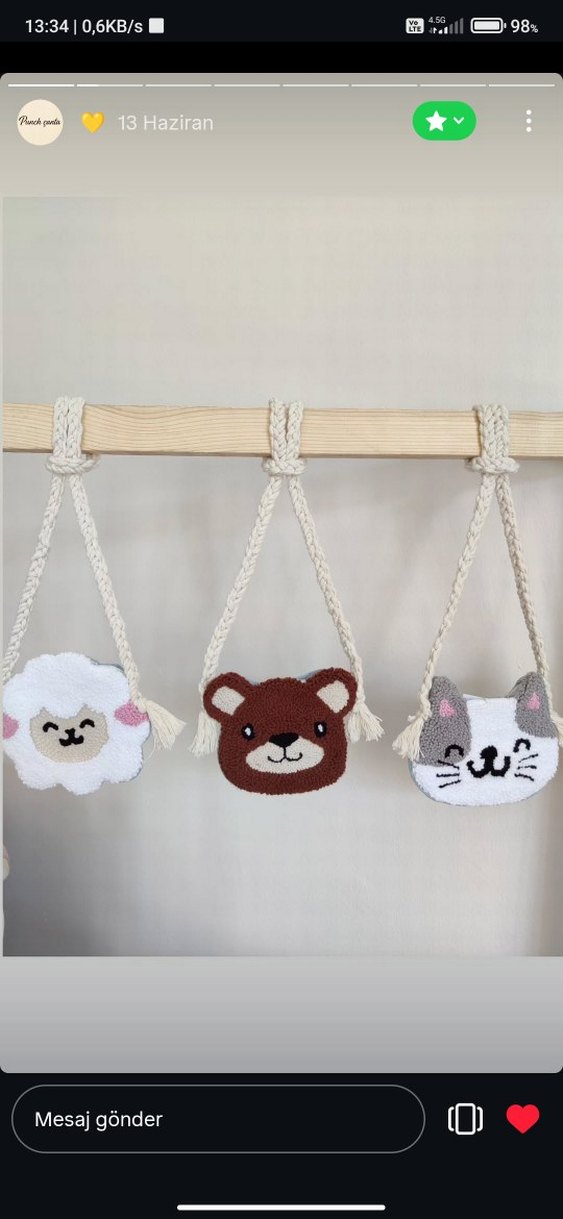 Gri ve kahverengi tonlarda, yumuşak hayvan yüzlü ve örgülü askılı kedi aksesuarları çantaları