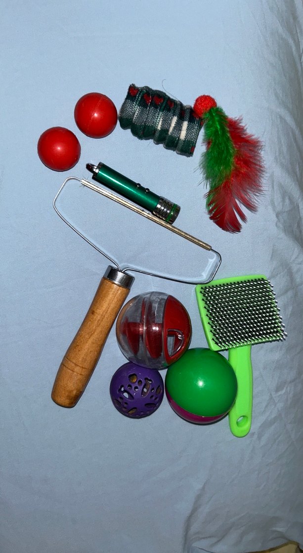 Kedi bakımına yardımcı set içerisinde bir adet tarak bir adet koltuk- halı temizleme aparatı (tüyleri kolayca topluyor) 2 tane zıpzıp top ve zıplayan yeşil oyuncak 2 tane çıngıraklı top 1 adet lazer ve 1 adet ödül maması topu ( içerisine ödül mamalarını koyduktan sonra kediniz kokusunu alarak ve döndürerek çıkarıp yer) Ve yanında vet’s plus malt ve acana yaş mama 11 ürün toplam 350 tl