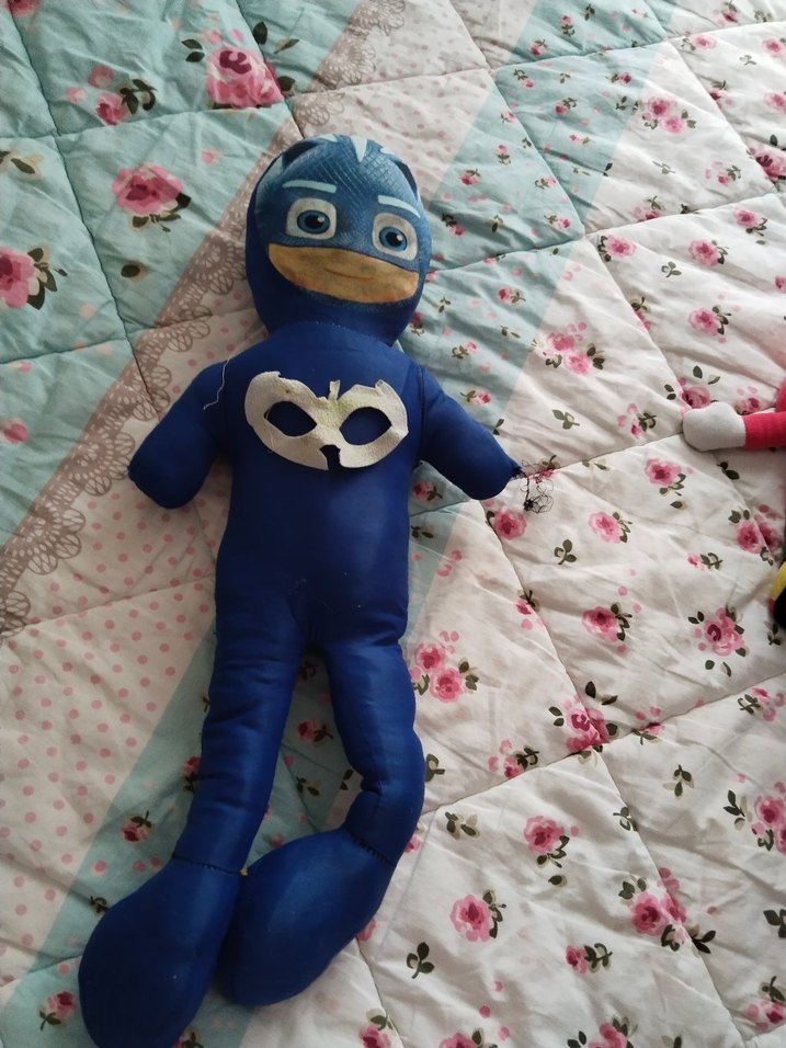 Koyu mavi renkte, süper kahraman maskesi detaylı yumuşak peluş figür.sorunalri var resimlerde var