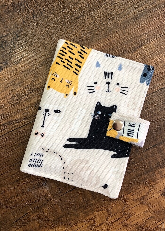 Kedi desen kumaş pasaport/ruhsat kılıfı