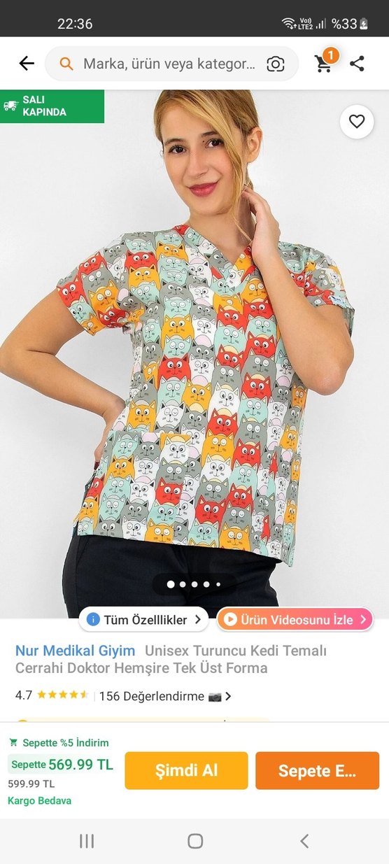 Kısa kollu, V yakalı, bol kesim, , renkli kedi desenli cerrahi doktor hemşire formasıdır. günlük kullanım için uygundur. 0 ürün büyük geldiği için satıyorum defo yok
