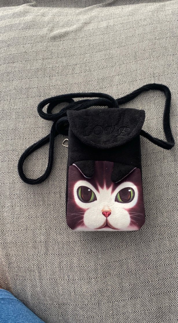 Kedili koyu gri kedi aksesuar çantası, kapaklı ve uzun askılıdır, taşımayı kolaylaştırır. Telefon çantası.2gözlü ve kapağı mıknatıslı