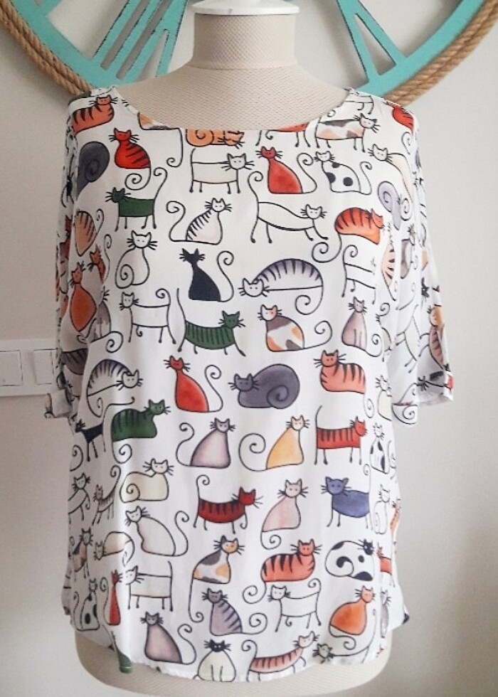 Desenini çok beğenip Nişantaşı'nda bir ten almıştım S bedenken:) Sanırım 1 kez giyebildim. Aslında ince M bedene de olur ama ben daha rahat ve dökümlü giyinmeyi seviyorum. Ana renk beyaz gibi gözüküyor ancak çok açık krem. İki koltuk altı arası 53, enseden boy 60 cm.