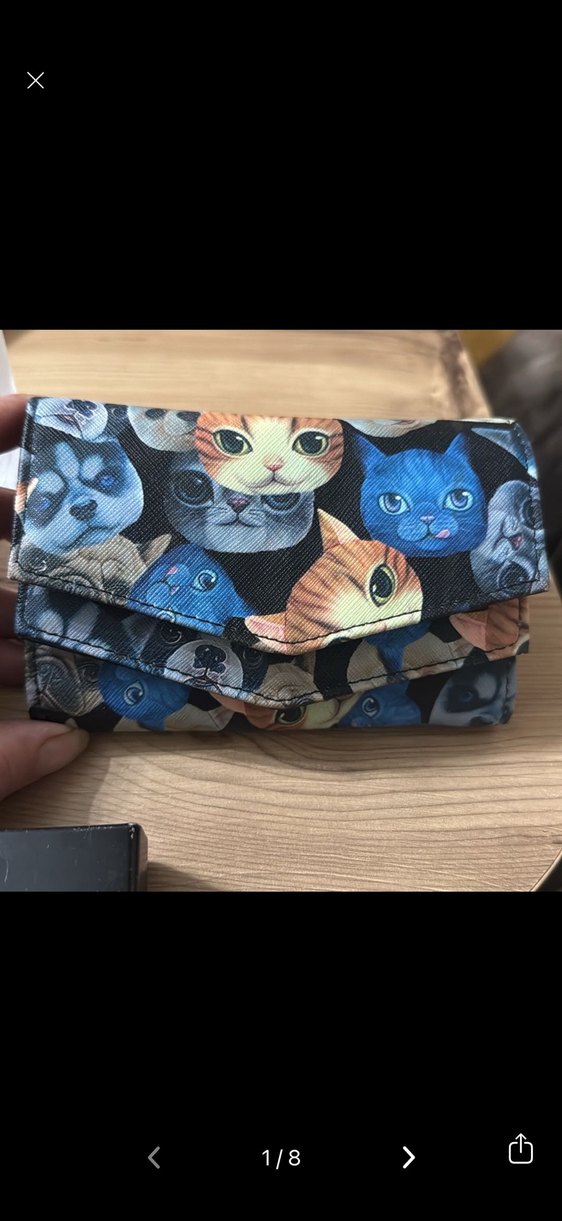 Kadınlar için kapama ve çeşitli kedi yüzleriyle renkli baskıya sahip clutch cüzdan. Sentetik kumaştan, sokak ve bohem tarzına uygun. Sıfır marka temsilidir
