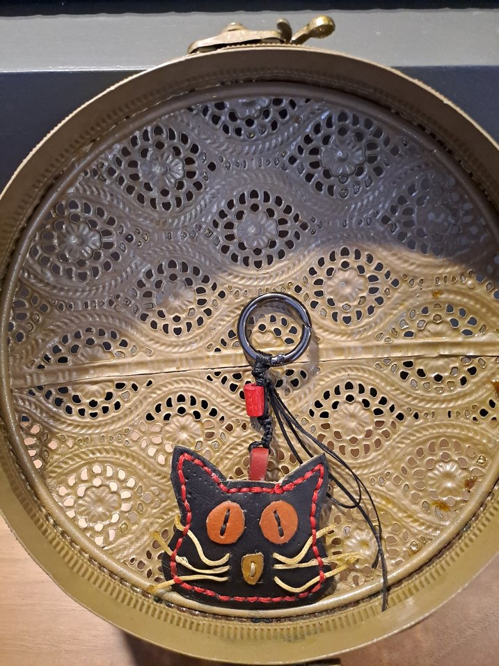 Kedi Figürlü Deri Charm