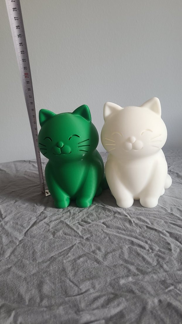 Beyaz kedi figürin, yumuşak ve açık renkte bir yüzeye sahip, neşeli ve gülümseyen tasarımlı. Kumbara istenilen renkte yapılabilir.