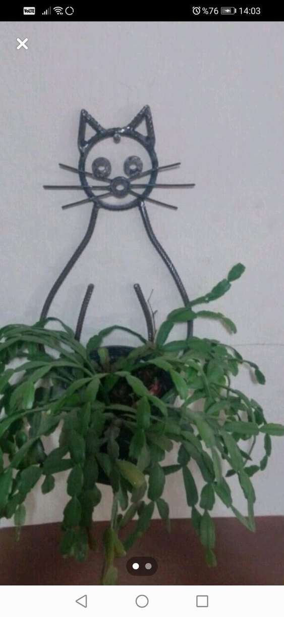 Kedi şekilli siyah metal saksı askısı. En 25 cm. Boy 43 cm Saksı çapı 14 cm