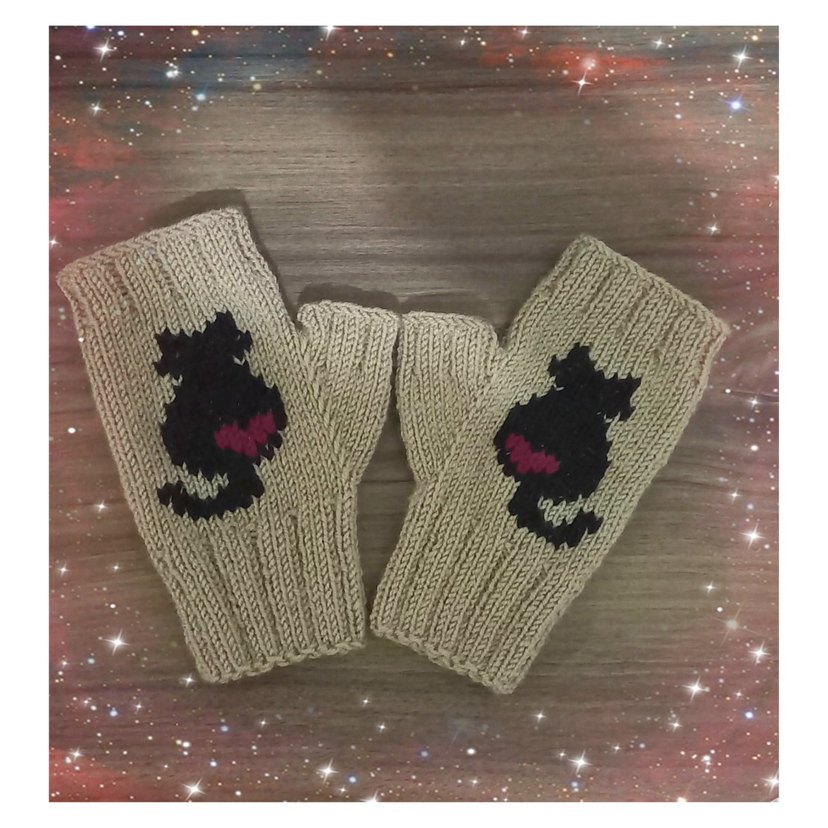 Kedi Figürlü Örgü Eldiven