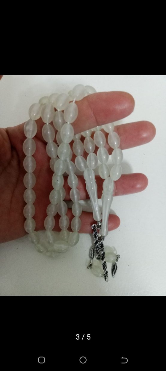 Yumuşak oval beyaz boncuklardan oluşan, sade metal püsküllü minimalist erkek tesbihi. Bohem tarzda, günlük kullanıma uygun.