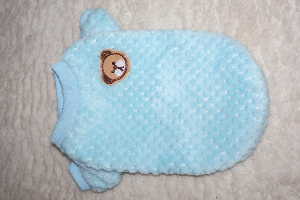 Nakışlı ayıcık detayıyla yumuşak pastel mavi çocuk battaniyesi, sıcak ve rahat kumaştan yapılmıştır.