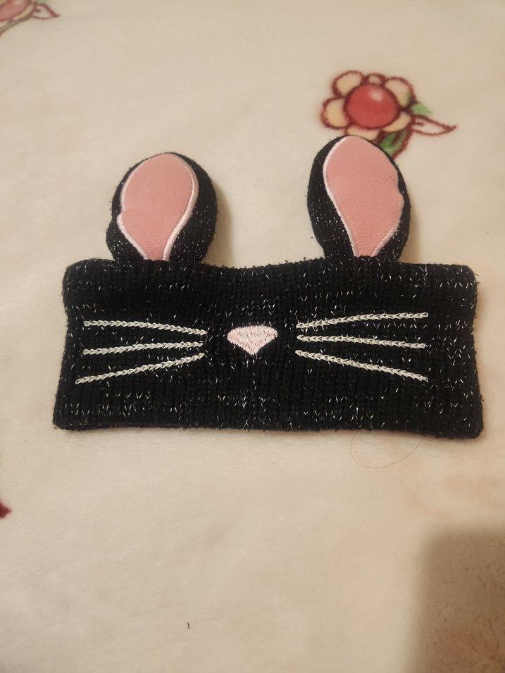 Sevimli kedi kulakları ve nakışlı bıyık ile siyah saç bandı. Yumuşak ve rahat kumaştan yapılmıştır.