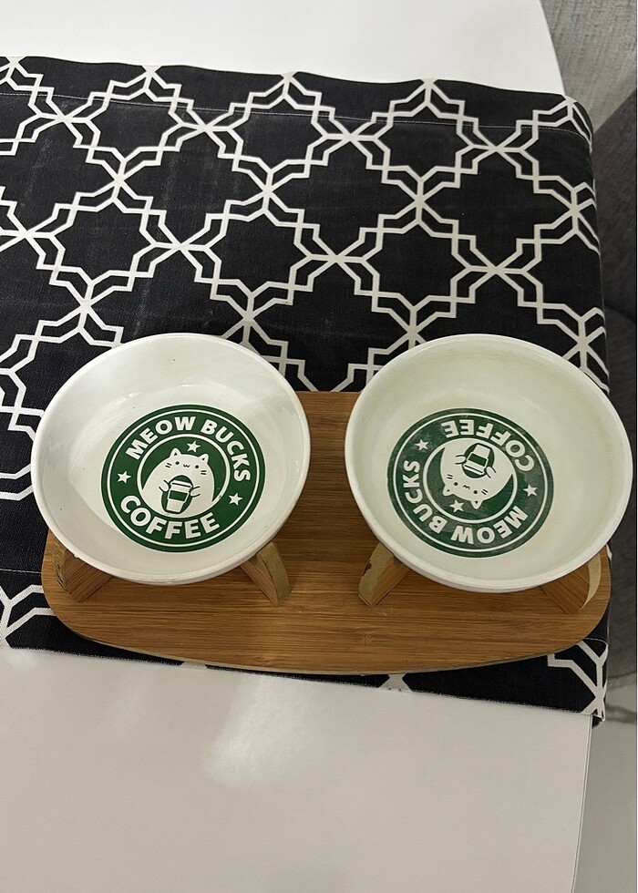 Kedi mama kabı 2 li ahşap altlıklı