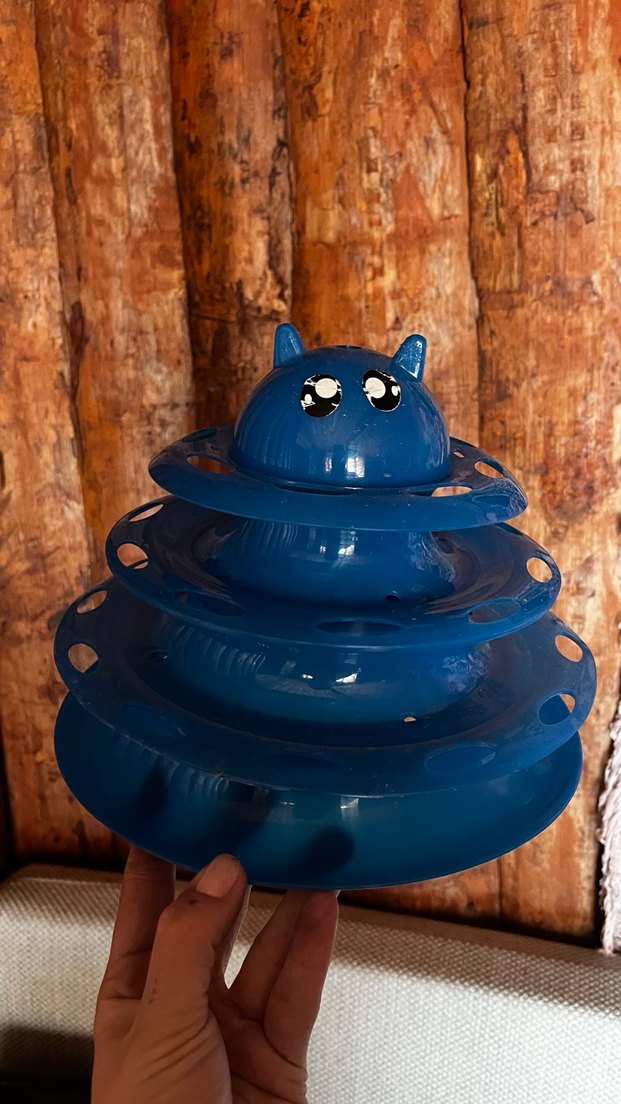 Kedi yüzü tasarımlı koyu mavi çok katmanlı oyuncak, kediler için etkileşimli eğlence sağlar.