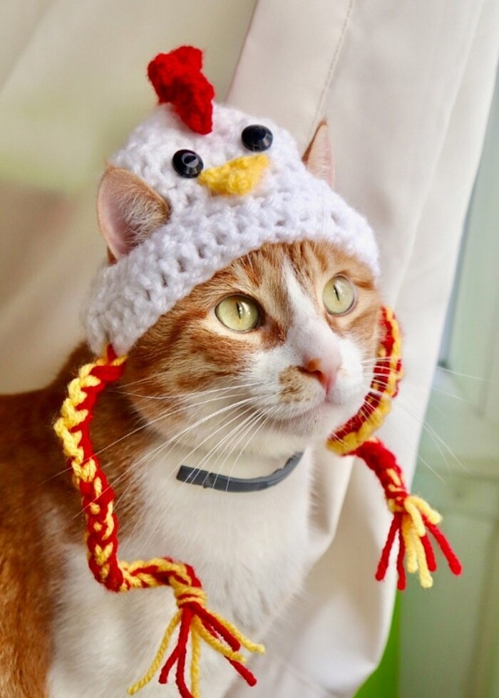 Kedi şapkası bere pet aksesuar hediyelik tavuklu şapka bere amig