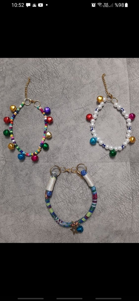3 adet #kedi #tasma #keditasması Hepsi zilli,şirin ve çok güzeller,kedilerim alışık olmadığı için sevmediler.Yetişkin kedilerin boynuna uygun olur diye düşünüyorum.Yavru kedilere büyük gelir.Fotoda ölçüleri de vardır.Sorunsuz ve yepyeniler.