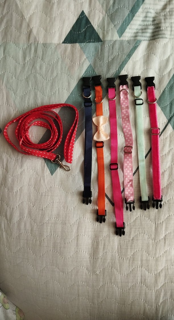 6 adet uzunluğu ayarlanabilir kedi tasması ve bir adet tasma kayışı bulunur. Toplu fiyattır.