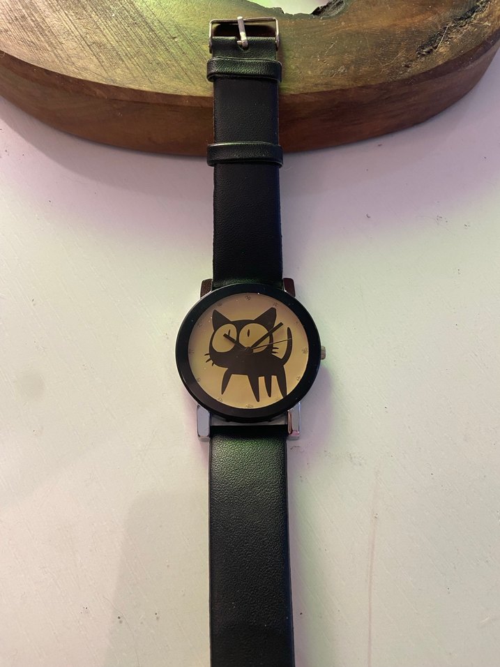 Hiç kullanılmamıştır. Kadınlar için siyah tokalı kayışa ve minimalist gotik tarzda kadranda kedi tasarımına sahip saat. Koyu renk, benzersiz bir hava katar.
