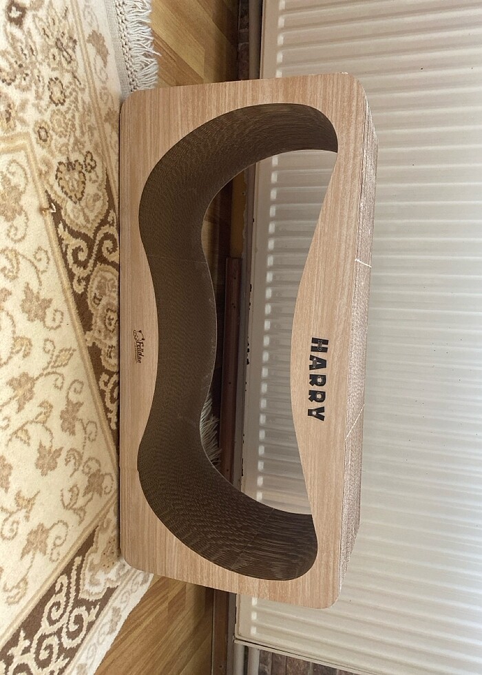 Yeni aldık iade edemediğim için satmak durumundayım isim etiketi yapışkanlı sticker cinsinden yani çıkıyor oluklu mukavva tırmalama tahtası