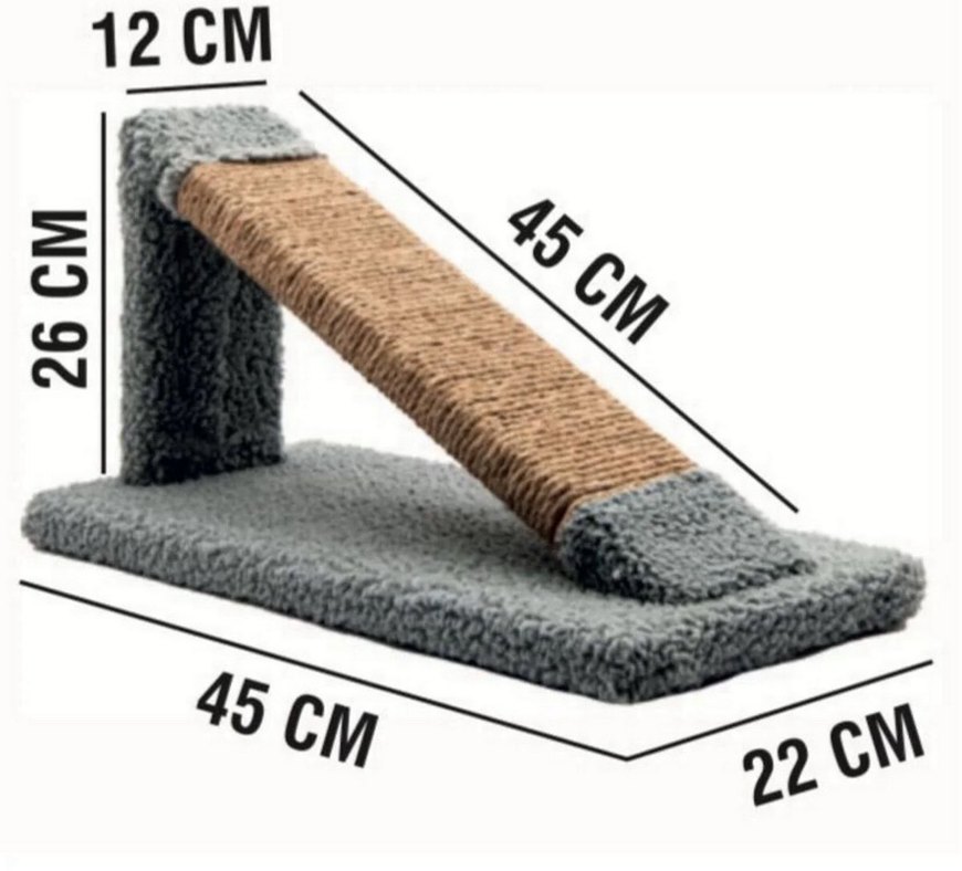 Kedi Tırmalama Rampası: Eğlence ve tırnak bakımı bir arada! Bu ürün firmamız tarafından üretilmiştir. Minik dostunuzun hem oyun oynarken eğlenmesini hem de tırmalama ihtiyacını destekleyen harika bir oyuncaktır. Tırmalama hareketi sayesinde patilerini güçlendirir ve stres atmasına yardımcı olur. Rampa Yüksekliği: 26 cm Rampa Genişliği: 12 cm Rampa Uzunluğu:45 cm Tabla Ebatı: 45x22x3 cm Tırmalama halatı jut halat olup 1. kalite malzemeden üretilmiştir. Welsoft kumaş ile kaplanmıştır. Tablanın alt kısmı zemine zarar vermemesi amacıyla özel içerikli tela ile kaplanmıştır.