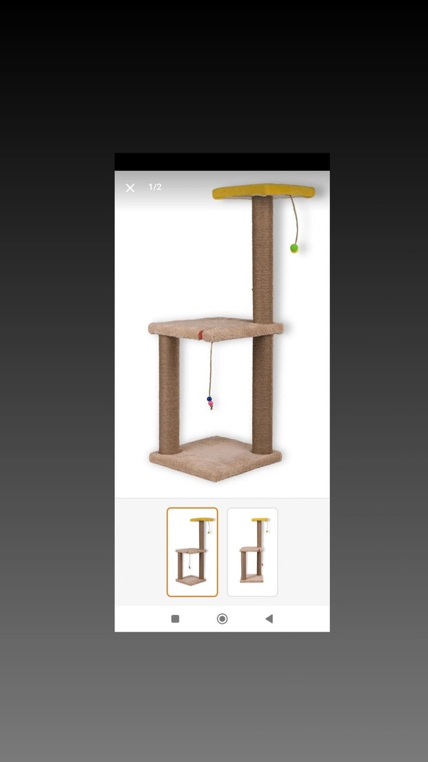 Bej renkte, yumuşak kumaş kaplı çok katmanlı kedi tırmalama alanı ve oyuncaklı askılı aparatlar içerir . kedim pek kullanmadı o yüzden satıyorum
