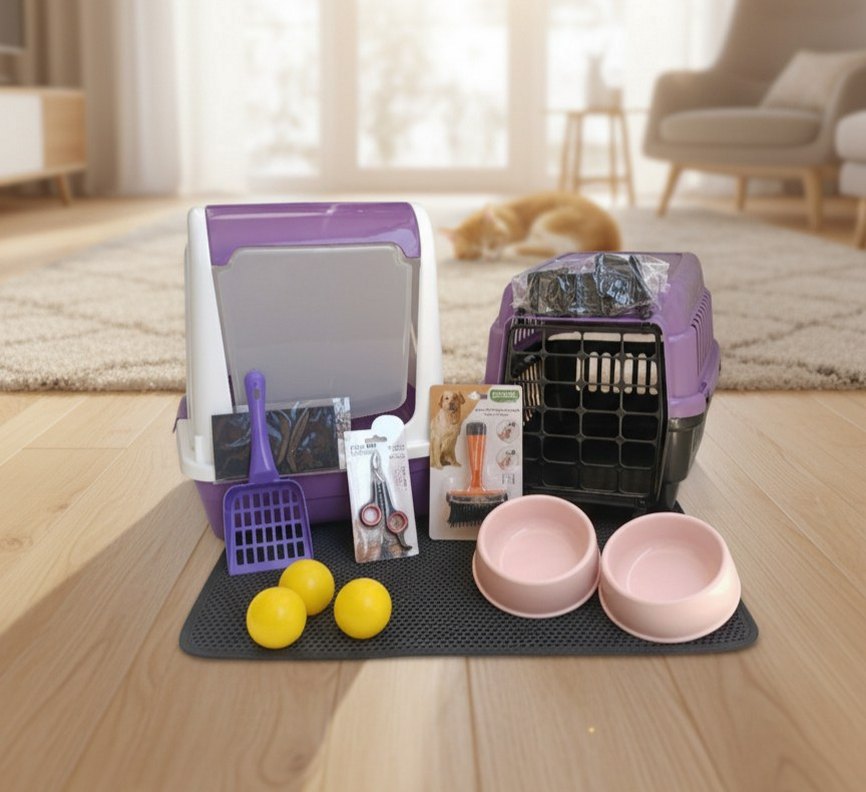 ürünlerimiz sıfırdır. 1 adet büyük boy kedi tuvaleti 1 adet orta boy taşıma çantası 1 adet kedi paspası 2 adet mama kabı 3 adet kedi topu 1 adet kedi tarağı 1 adet kedi tırnak makası 1 adet kürek ek olarak sürpriz bir hediyemiz vardır