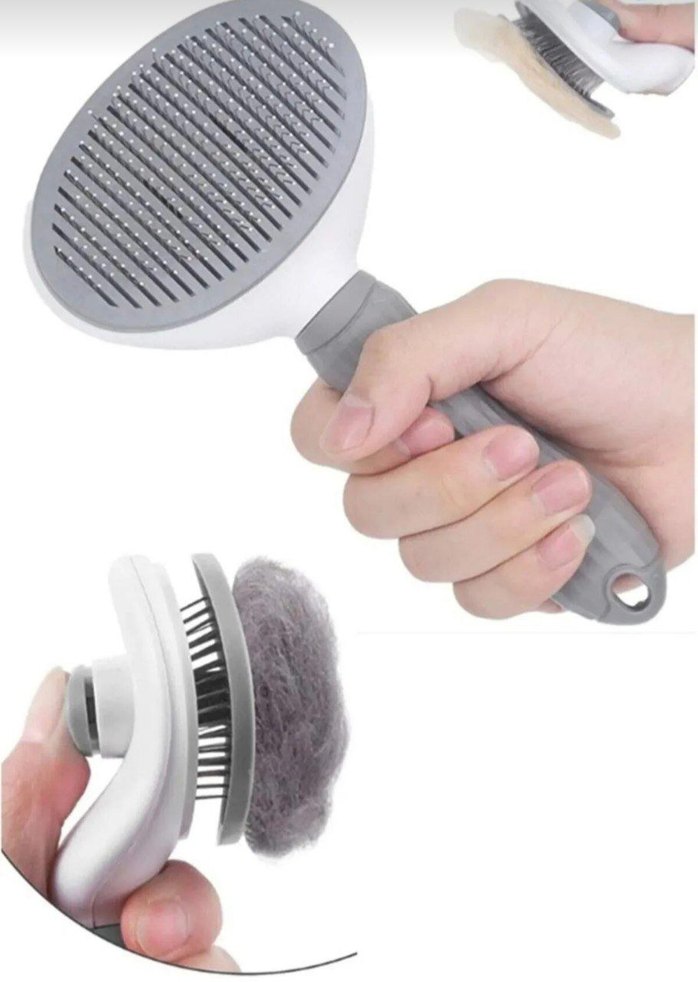 Gri kedi tüy fırçası, etkili tüy temizliği için ince metal kıllara sahiptir. Kolay temizleme için çıkarılabilir ve rahat tutuşlu saplıdır.