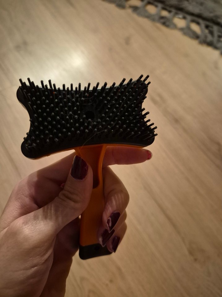 kedi tüyü toplayıcı fırça, esnek kıllarıyla gevşek tüyleri etkili şekilde toplar. Rahat sapı vardır.