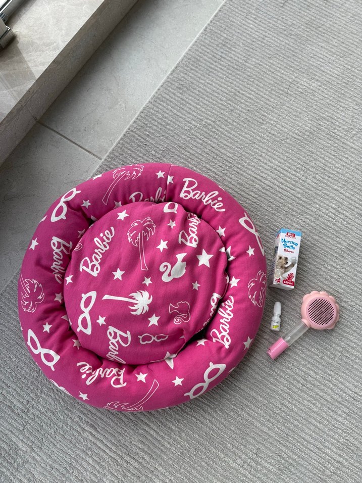 Sıfır kedi yatağı, göz solüsyonu, biberonu, kedi tarağı